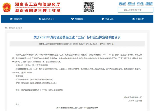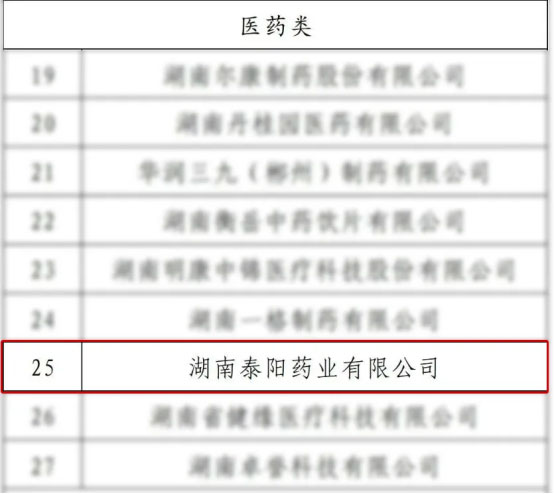 近日,湖南省工业和信息化厅公布了2025年消费品工业“三品”(增品种、提品质、创品牌)标杆企业名单,湖南泰阳药业有限公司成功入选成为医药类三品标杆企业之一。